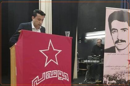 وتاری هاوڕێ عەبدوڵڵا ئازەربار لە ڕێ و ڕەسمی ڕیزگرتن لە ڕۆژی کۆمەڵە و خەباتی ٥٠ ساڵەی کۆمەڵە لە ستۆکهۆڵم