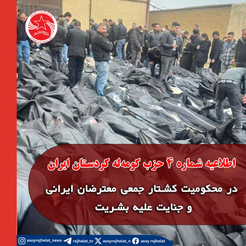 اطلاعیه شماره ٤ حزب کومهله کردستان ایران، درمحکومیت کشتار جمعی معترضان ایرانی و جنایت علیه بشریت